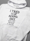 Худи с интересным принтом «женщины I tried to be normal once. Worst two minutes of my life». Приближается день рождения любимой мамы или сестры, а подарка еще нет? Очень хочется угодить? Значит, нужно найти что-то красивое, практичное, обязательно модное, да еще и с изюминкой! Прикольные женские худи – именно тот вариант. Порадуйте свою маму, сестру или даже «продвинутую» бабушку уютной женской толстовкой с капюшоном. Клевая, добротная вещь не только согреет, но и выделит из толпы, создаст отличное настроение в любую погоду.